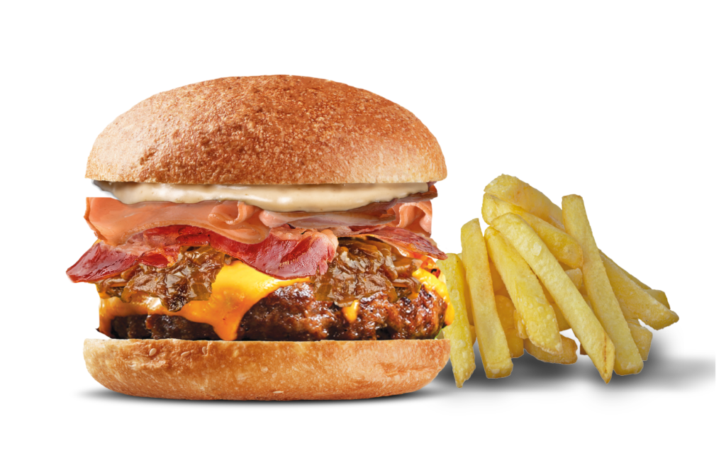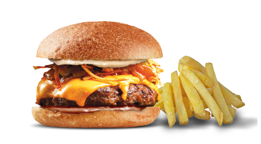 130 gr. Burger Köftesi, GF Sos, Amerikan Cheddar, Kıtır Soğan, Amerikan BBQ Sos + Patates