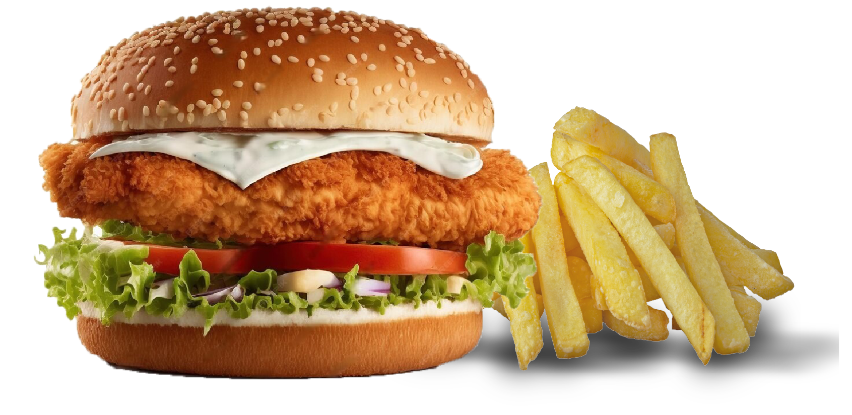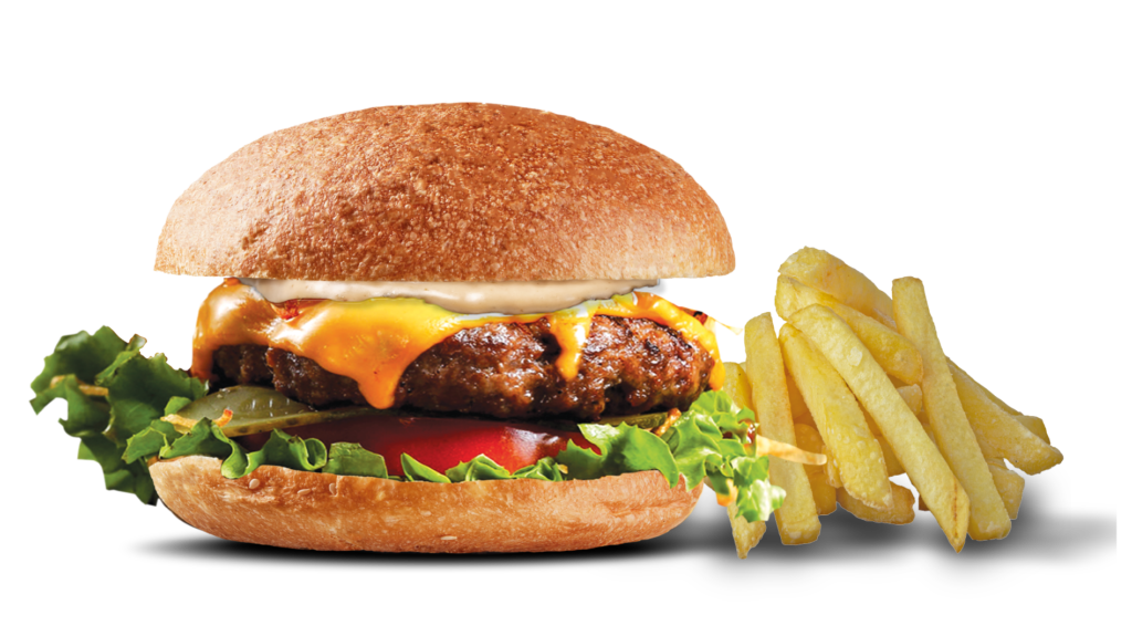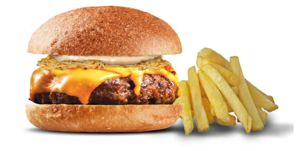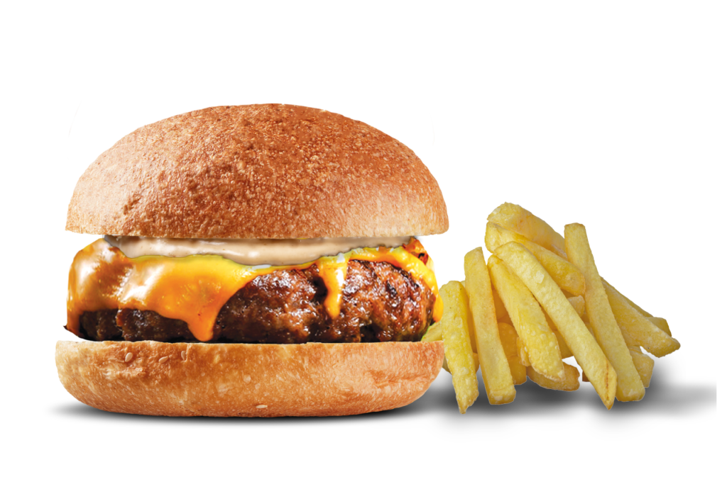 130 gr. Burger Köftesi, GF Sos, Amerikan Cheddar, Çıtır Tavuk + Patates